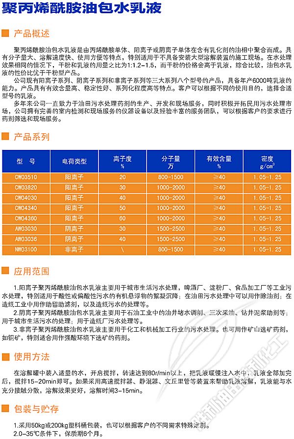 聚丙烯酰胺(àn)油包水乳液